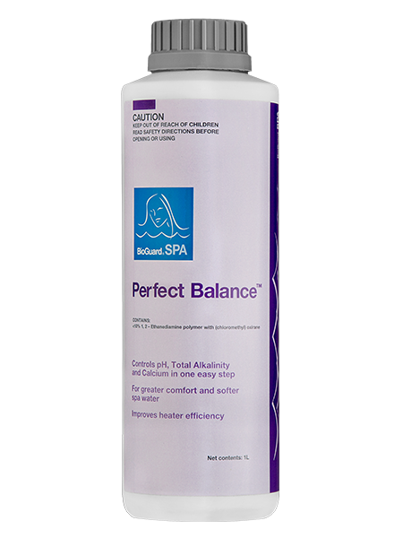 BioGuard SPA Perfect Balance is a phosphate buffer that maintains stable pH, softens water, inhibits corrosion in spas and hot tubs though is not for use in concrete or fully tiled spas. It will also increase efficiency of the heater.