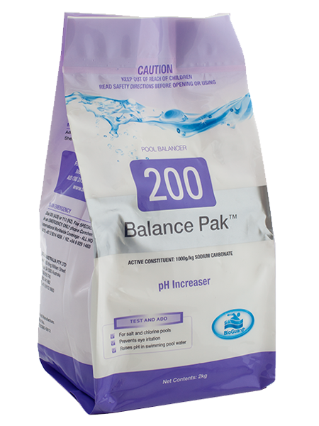BioGuard Balance Pak 200 is a soluble pH increaser that is suitable for all pool types. It prevents corrosion of equipment and metal fittings, etching of concrete and grout, and wrinkling of liners as well as eye irritation due to low pH.