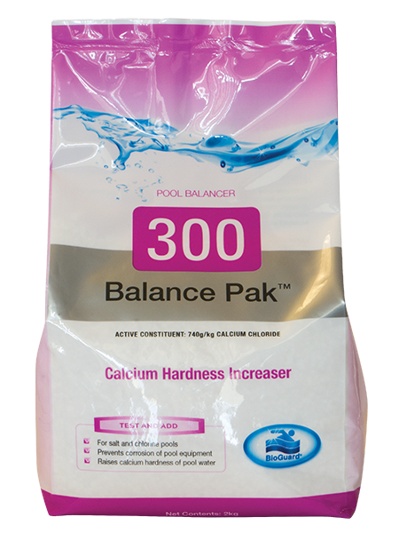 BioGuard Balance Pak 300 is a soluble calcium hardness increaser. It increases calcium hardness, prevents etching and roughness of plaster finishes from low calcium & prevents corrosion of equipment and metal fittings.