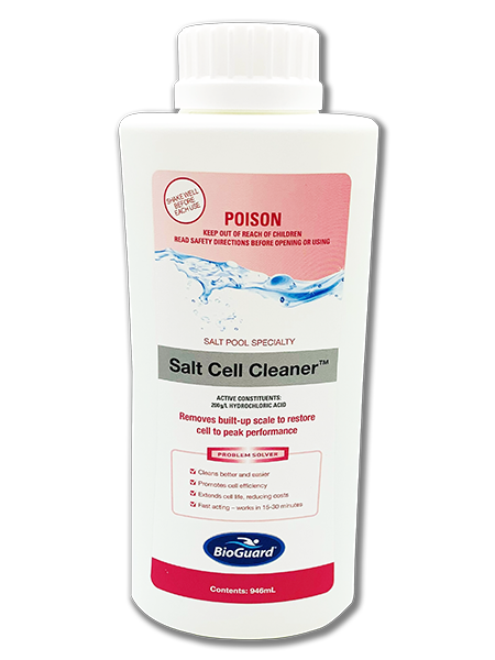 BioGuard Salt Cell Cleaner is designed to effectively clean chlorinator cells of scale deposits and other material without damaging the cell. It also improves cell efficiency which prolongs cell life and reduces running costs. It also won’t damage cells unlike straight hydrochloric acid.