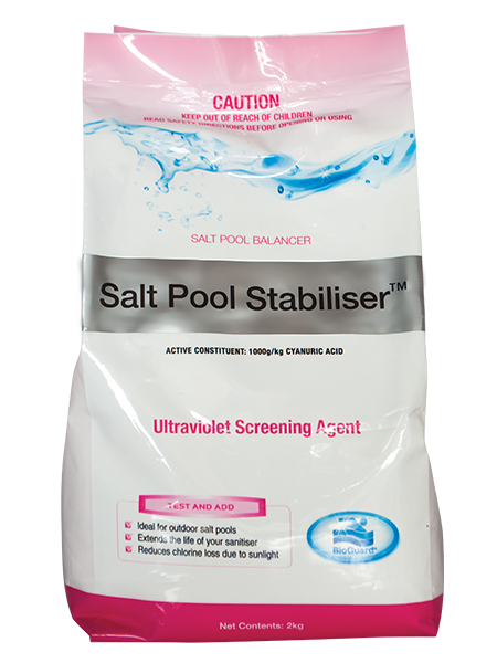 BioGuard Salt Pool Stabiliser is a granular cyanuric acid for use in salt chlorinated systems that prevents chlorine loss due to sunlight and prolongs salt cell life. It reduces maintenance costs by extending the life of salt cell, reducing the chlorine consumption and therefore chlorine generation demands.