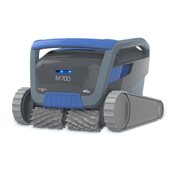 Maytronics 10 year anniversary limited edition Dolphin M 700 robotic pool cleaner with exclusive Maytronics For Life benefits, for pools up to 15m, pick-me-up mode, Wi-Fi connectivity, temperature sensor, 5-stage LED filter gauge.