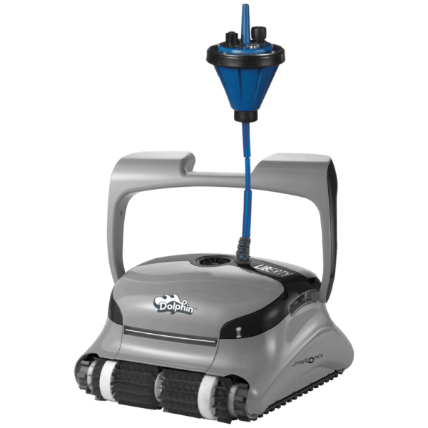 Maytronics Dolphin Liberty is a unique battery-powered cordless robotic pool cleaner for pools that are irregularly shaped or have pool obstacles such as islands, pillars and bridges.