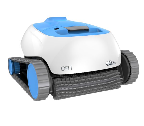 Maytronics Dolphin DB 1 robotic pool cleaner for small pools with tight corners, lightweight, compact design, top access net filter basket, expertly cleans your pool floor.